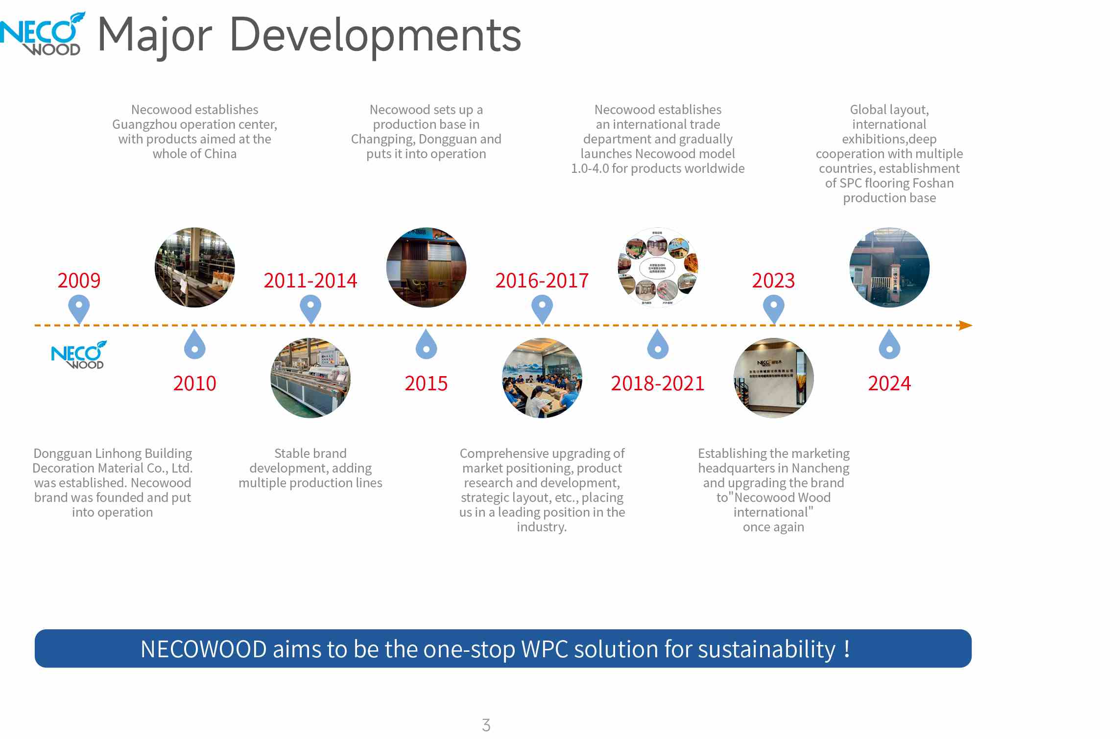 Necowoods vækst styres af en dobbeltmotor af teknologidrevet innovation og kundeorienteret udvikling. Fra en enkelt produktionslinje udvidede vi vores muligheder for at tilbyde et komplet udvalg af WPC -løsninger til bolig-, kommercielle og offentlige applikationer.
